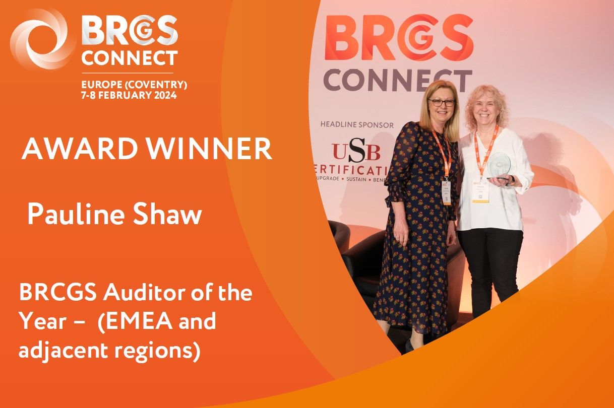 The BRCGS Auditor of the Year award for 2024 highlighted Pauline's high customer satisfaction rating where she was praised for her audit preparation and technical knowledge, along with her approachable and effective interview technique. Pauline was also an active member of the committee that developed Issue 4 of the BRCGS Storage and Distribution Global Standard. Her industry knowledge and experience enabled her to share suggestions to strengthen the requirements and ensure its rigour and relevance for businesses using the standard.