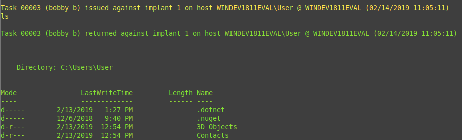 One of the issues we’ve overcome in this release was around tracking tasks; there was no way to determine what output related to which issued command. This was largely due to the implant not using task ID’s that were tracked throughout the entire command process flow.