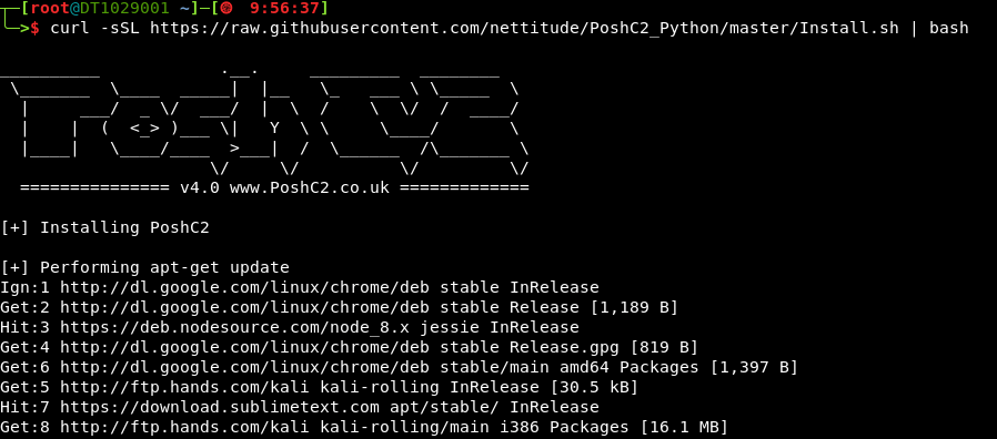 curl -sSL https://raw.githubusercontent.com/nettitude/PoshC2_Python/master/Install.sh | bash